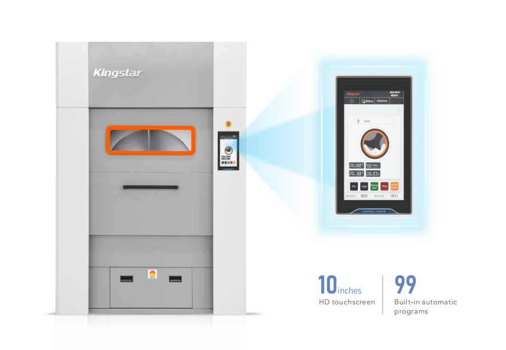 ❑ 乾燥プログラム: プログラムに関して言えば、 キングスター 100 kg dryer 10インチフルカラータッチスクリーンを採用し、99個の乾燥プログラムを保存できます。各プログラムのパラメータも調整できます。乾燥時には、乾燥機は時間、温度、湿度の 3 つのモード制御を使用します。